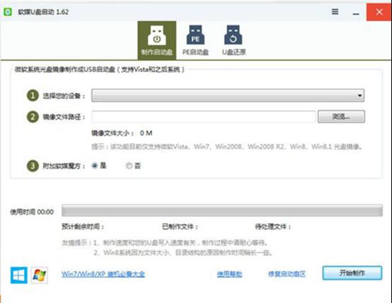 4、選擇需要制作的U盤(這時(shí)最好別插入其他的U盤,以免選錯(cuò)),然后再選擇剛才制作好的ISO鏡像文件,點(diǎn)擊“開始制作”即可完成。