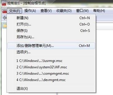 2、在打開的“控制臺(tái)”窗口中,點(diǎn)擊“文件”->"添加/刪除管理單元"。