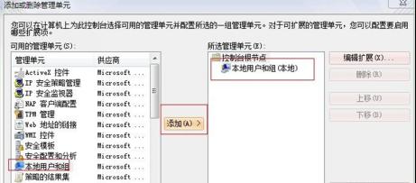 3、在打開的“添加/刪除管理單元”窗口中點(diǎn)擊“添加”按鈕,在“添加獨(dú)立單元”窗口中選擇“本地用戶和組”,并點(diǎn)擊“完成”。