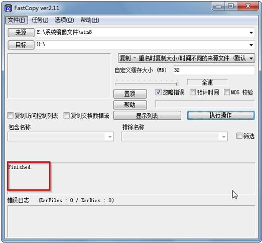 | Windows 7,中文名稱視窗7,是由微軟公司(Microsoft)開發的操作系統,內核版本號為Windows NT 6.1。Windows 7可供家庭及商業工作環境:筆記本電腦 、平板電腦 、多媒體中心等使用。Windows 7可供選擇的版本有:入門版(Starter)、家庭普通版(Home Basic)、家庭高級版(Home Premium)、專業版(Professional)、企業版(Enterprise)(非零售)、旗艦版(Ultimate)。 使用Windows系統過程中,有時需要重裝系統,比如想換成非常好用的Win7旗艦版系統時,在重裝系統前是需要對系統的重要文件進行備份,備份系統的方法有各種各樣,使用軟件進行備份也是比較常用的方法,但絕大部分軟件在備份大容量數據時都需浪費很長時間,現小編就此問題,給大家分享妙用FastCopy快速備份大地Win7旗艦版系統大容量數據。1、下載并解壓FastCopy工具,打開解壓好的文件夾,雙擊打開名為“FastCopy.exe”的應用程序。 2、在出現的FastCopy ver2.11窗口中,點選“來源”,在出現的“瀏覽文件夾”中選擇要進行拷貝的文件夾,比如小編這里演示的是Win8鏡像文件。 3、重新返回到FastCopy ver2.11窗口中,點選“目標”→在出現的“瀏覽文件夾”中選擇數據要被存放的地方,比如小編這里演示的是“口袋專業_PE (H:)”,然后點擊“確定”。 ![]() 4、選擇“執行操作 ”,其他全部默認即可。 ![]() 5、當出現“Finished.”的文字,則說明大容量數據備份已經完成了。 ![]() 以上就是關于妙用FastCopy快速備份大地Win7旗艦版系統大容量數據介紹了,使用Finished工具可以精準極速的備份需要的資料,大大的提高備份時間,有需要備份大容量數據的用戶請試試吧。 windows 7 的設計主要圍繞五個重點——針對筆記本電腦的特有設計;基于應用服務的設計;用戶的個性化;視聽娛樂的優化;用戶易用性的新引擎。 跳躍列表,系統故障快速修復等,這些新功能令Windows 7成為最易用的Windows。 |