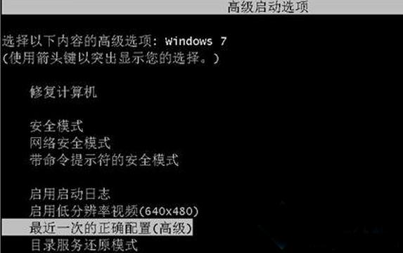 2、選擇“最近一次的正確配置(高級(jí))”選項(xiàng),對(duì)系統(tǒng)還原至最近一次關(guān)機(jī)前的配置;