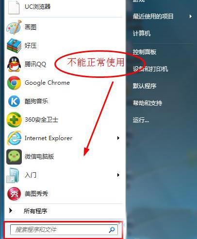 | Windows 7,中文名稱視窗7,是由微軟公司(Microsoft)開發(fā)的操作系統(tǒng),內(nèi)核版本號為Windows NT 6.1。Windows 7可供家庭及商業(yè)工作環(huán)境:筆記本電腦 、平板電腦 、多媒體中心等使用。Windows 7可供選擇的版本有:入門版(Starter)、家庭普通版(Home Basic)、家庭高級版(Home Premium)、專業(yè)版(Professional)、企業(yè)版(Enterprise)(非零售)、旗艦版(Ultimate)。 相信很多用戶都對Win7系統(tǒng)開始菜單的“搜索程序和文件”框都不陌生吧,通過這個搜索框,用戶可快速地找到自己想要的文件或文件夾位置,但也有用戶反映這個搜索功能無法使用的問題,怎么辦呢?下面小編給大家介紹無法正常使用中關(guān)村Win7系統(tǒng)“搜索程序和文件”的解決措施。