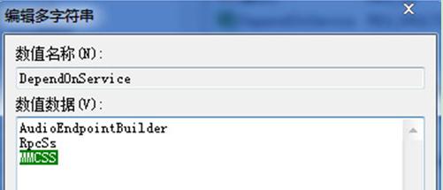 4、在打開的編輯窗口中,刪除MMCSS,保留其他數值,然后點擊“確定”按鈕保存后,退出注冊表編輯器。