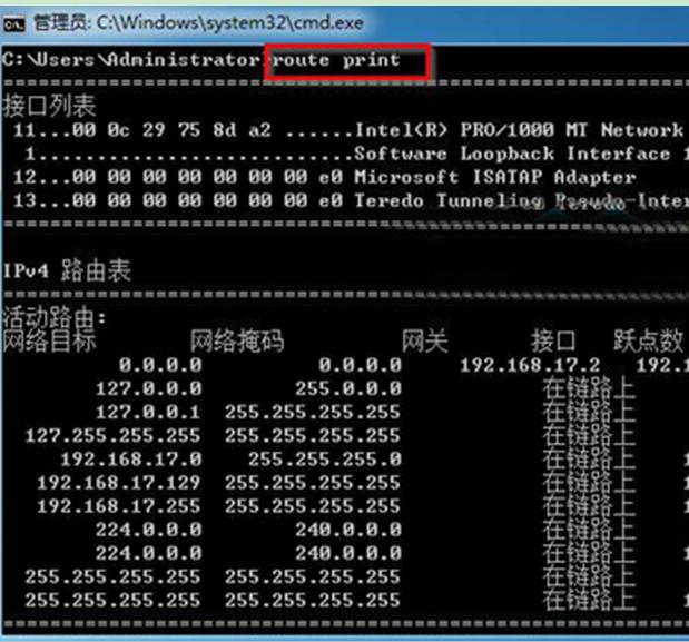 | Windows 7,中文名稱視窗7,是由微軟公司(Microsoft)開發(fā)的操作系統(tǒng),內(nèi)核版本號為Windows NT 6.1。Windows 7可供家庭及商業(yè)工作環(huán)境:筆記本電腦 、平板電腦 、多媒體中心等使用。Windows 7可供選擇的版本有:入門版(Starter)、家庭普通版(Home Basic)、家庭高級版(Home Premium)、專業(yè)版(Professional)、企業(yè)版(Enterprise)(非零售)、旗艦版(Ultimate)。 一些用戶由于工作需要或其他的需求,需查看深度技術(shù)win7 64位系統(tǒng)的IP路由表信息。怎樣查看呢?相信很多用戶并不知道如何操作。下面小編就給大家介紹查看深度技術(shù)Win7系統(tǒng)IP路由器表信息的步驟方法,具體如下:1、按“WIN+R”打開“運行”窗口,輸入“CMD”命令后按回車打開“命令提示符”窗口。 2、在打開的“命令提示符”窗口中,輸入“route print”命令后按回車鍵。 3、此時就可看到IP路由表的全部數(shù)據(jù)信息; 4、比如當用戶還需查詢IP路由表里以“192”開頭的路由信息的話,也可以在其中輸入“route print 192.*”命令后按回車鍵,就可查詢到192開頭的IP路由信息了。 以上就是查看深度技術(shù)Win7系統(tǒng)IP路由器表信息的步驟方法介紹了,想要查詢的用戶請按照上面的方法來設(shè)置吧。 windows 7 的設(shè)計主要圍繞五個重點——針對筆記本電腦的特有設(shè)計;基于應(yīng)用服務(wù)的設(shè)計;用戶的個性化;視聽娛樂的優(yōu)化;用戶易用性的新引擎。 跳躍列表,系統(tǒng)故障快速修復(fù)等,這些新功能令Windows 7成為最易用的Windows。 |