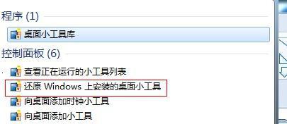 2、在顯示的相關(guān)結(jié)果中選定“還原Windows上安裝的桌面小工具”的選項(xiàng),按回車(chē)確定后就能在復(fù)原小工具的功能了。