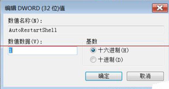 3、在打開的編輯字符串中將數(shù)值數(shù)據(jù)設(shè)置為 1(0為禁止自動恢復(fù)),點擊“確定”按鈕保存即可。