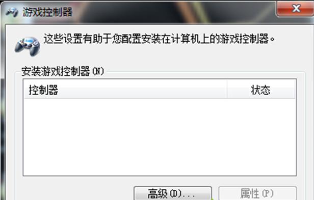 2、此時(shí)系統(tǒng)彈出游戲控制器窗口,在欄目之中看到設(shè)備列表,點(diǎn)擊“高級(jí)”按鈕。