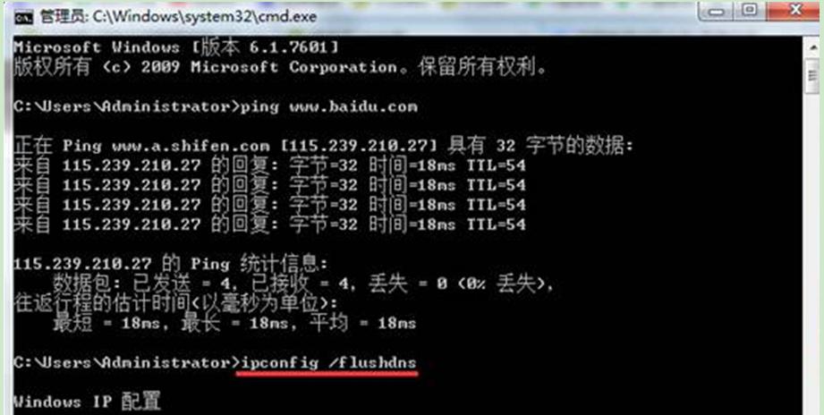 3、檢測(cè)完網(wǎng)速后,輸入“ipconfig /flushdns”命令后按回車(chē)刷新DNS緩存;