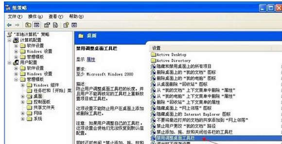 | Windows 7,中文名稱視窗7,是由微軟公司(Microsoft)開發的操作系統,內核版本號為Windows NT 6.1。Windows 7可供家庭及商業工作環境:筆記本電腦 、平板電腦 、多媒體中心等使用。Windows 7可供選擇的版本有:入門版(Starter)、家庭普通版(Home Basic)、家庭高級版(Home Premium)、專業版(Professional)、企業版(Enterprise)(非零售)、旗艦版(Ultimate)。 桌面工具欄是XP系統界面上一個重要的組成部分,但在操作界面時,用戶不慎調整到工具欄是常見的問題。為了幫助用戶避免這種情況的發生,現小編給大家介紹設置系統之家XP系統用戶無權調整桌面工具欄的方法,具體如下:1、點擊“開始——運行”輸入“gpedit.msc”命令后點擊“確定”按鈕,打開組策略編輯器。 2、然后點擊“用戶配置——管理模板——桌面”。 3、在右側窗口雙擊打開“禁止用戶調整桌面工具欄”的選項。 4、進入設置選項卡窗口,選擇“已啟用”項,點擊“確定”使設置生效。 windows 7 的設計主要圍繞五個重點——針對筆記本電腦的特有設計;基于應用服務的設計;用戶的個性化;視聽娛樂的優化;用戶易用性的新引擎。 跳躍列表,系統故障快速修復等,這些新功能令Windows 7成為最易用的Windows。 |