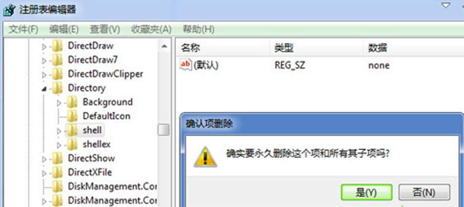 2、在打開的Win7注冊表編輯器中,依次展開以下注冊項HKEY_CLASSES_ROOT\Directory\shell