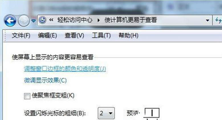 | Windows 7,中文名稱視窗7,是由微軟公司(Microsoft)開發的操作系統,內核版本號為Windows NT 6.1。Windows 7可供家庭及商業工作環境:筆記本電腦 、平板電腦 、多媒體中心等使用。Windows 7可供選擇的版本有:入門版(Starter)、家庭普通版(Home Basic)、家庭高級版(Home Premium)、專業版(Professional)、企業版(Enterprise)(非零售)、旗艦版(Ultimate)。 系統之家Win7鼠標光標太細且閃爍很快影響文字輸入的應對辦法分享給大家。對于辦公族用戶來說,總是需要在電腦上輸入文字,但如果屏幕上的鼠標光標太細而且閃爍的速度太快的話,反而影響輸入文字的速度,降低工作效率。怎么辦?其實此問題,可通過以下辦法改變win7筆記本下載的光標變粗點,能夠看清光標,避免一些不必要的麻煩,具體如下:1、點擊“開始——控制面板中心——輕松訪問——輕松訪問中心”; 2、在彈出來的輕松訪問中心面板中,點擊“使計算機更易查看”; 3、找到“使屏幕上顯示的內容更容易查看”,對閃爍光標的粗細進行設置; 4、設置完成后,點擊下面的“確定”按鈕保存。 以上就是關于系統之家Win7鼠標光標太細且閃爍很快影響文字輸入的應對辦法介紹了,鼠標光標粗細影響文字輸入速度,調整適合的光驅速度是非常重要的。 windows 7 的設計主要圍繞五個重點——針對筆記本電腦的特有設計;基于應用服務的設計;用戶的個性化;視聽娛樂的優化;用戶易用性的新引擎。 跳躍列表,系統故障快速修復等,這些新功能令Windows 7成為最易用的Windows。 |