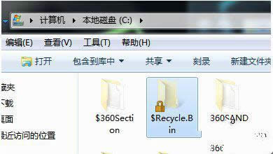 4、重新打開本地磁盤C,就能夠看到并點(diǎn)擊隱藏的“$Recycle.Bin”文件夾。