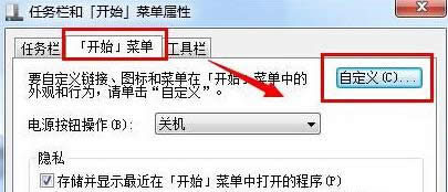 2、在打開(kāi)的任務(wù)欄屬性窗口中,將界面切換到開(kāi)始菜單這一欄中,然后點(diǎn)擊下方的自定義按鈕。