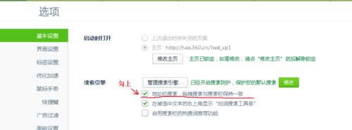 2、將基本設(shè)置中,勾選“地址欄搜索、拖拽搜索與地址欄”的選項(xiàng),然后點(diǎn)擊“修改”按鈕。