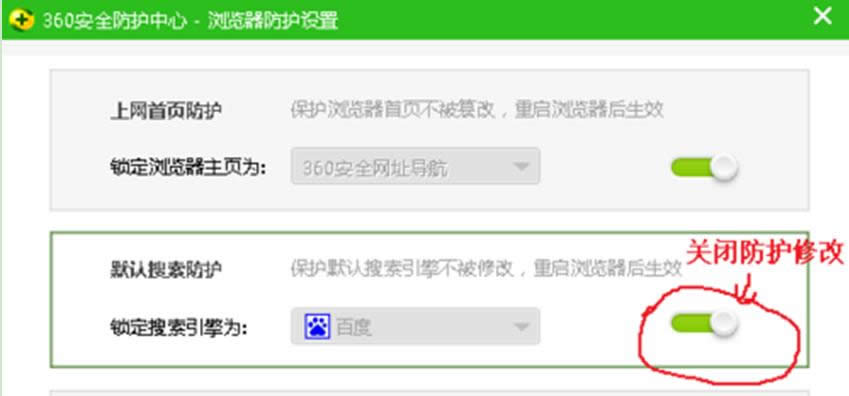 3、在默認(rèn)搜索防護(hù)中關(guān)閉保護(hù)修改為自己需要的搜索就行了。