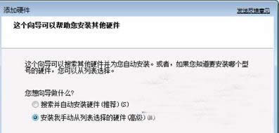 2、在操作系統(tǒng)向?qū),選擇“安裝我手動(dòng)從列表選擇的硬件(高級(jí))”。