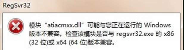 | Windows 7,中文名稱視窗7,是由微軟公司(Microsoft)開發(fā)的操作系統(tǒng),內(nèi)核版本號為Windows NT 6.1。Windows 7可供家庭及商業(yè)工作環(huán)境:筆記本電腦 、平板電腦 、多媒體中心等使用。Windows 7可供選擇的版本有:入門版(Starter)、家庭普通版(Home Basic)、家庭高級版(Home Premium)、專業(yè)版(Professional)、企業(yè)版(Enterprise)(非零售)、旗艦版(Ultimate)。 在使用Win7 64位旗艦版系統(tǒng)過程中,最近有用戶遇到這樣一個(gè)問題,在運(yùn)行regsvr32.exe的時(shí)候,出現(xiàn)“模塊atiacmxx.dll可能與您正在運(yùn)行的windows版本不兼容,檢查該模塊是否與regsvr.exe的x86或x64版本兼容”的錯(cuò)誤提示,番茄花園Win7系統(tǒng)提示模塊atiacmxx.dll不兼容怎么回事?針對此問題,小編給大家作出如下解析。
