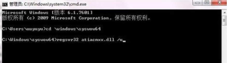 3、輸入regsvr32 atiacmxx.dll /u命令后按回車。
