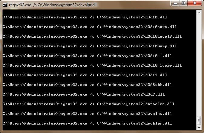 2、在打開的命令窗口中輸入“for %1 in (%windir%\system32\*.dll) do regsvr32.exe /s %1”命令后按回車。