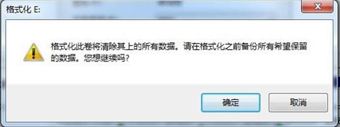 4、如果用默認設置格式化卷,請在“格式化”對話框中,點擊“確定”按鈕,然后再次單擊“確定”即可。