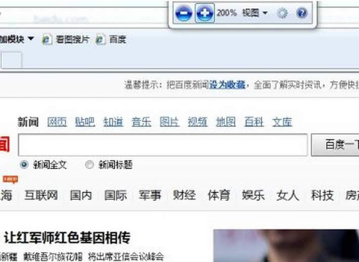 3、在彈出的的放大鏡窗口中,可點擊+號放大,點擊-號則縮小網(wǎng)頁。
