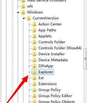 4、在打開(kāi)的注冊(cè)表編輯器窗口中將界面定位到以下注冊(cè)項(xiàng)HKEY_CURRENT_USER\Software\Microsoft\Windows\CurrentVersion\Explorer中,