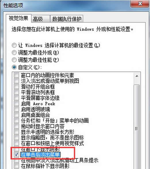 | Windows 7,中文名稱視窗7,是由微軟公司(Microsoft)開發的操作系統,內核版本號為Windows NT 6.1。Windows 7可供家庭及商業工作環境:筆記本電腦 、平板電腦 、多媒體中心等使用。Windows 7可供選擇的版本有:入門版(Starter)、家庭普通版(Home Basic)、家庭高級版(Home Premium)、專業版(Professional)、企業版(Enterprise)(非零售)、旗艦版(Ultimate)。 電腦公司Win7旗艦版系統深得用戶的喜愛,它的功能全部,操作速度快,但有些用戶操作失誤會導致屏幕上出現一個殘影,而這個殘影一般都沒有消除的按鈕,停留在界面上很難看,怎么辦呢?為了幫助用戶更好地使用電腦公司Win7旗艦版系統。下面小編給大家分享去除電腦公司Win7旗艦版系統電腦中的殘影的方法。1、在桌面的計算機圖標上右鍵選擇“屬性”。 2、在打開的系統屬性窗口中,將界面切換到“高級”標簽頁,點擊性能后面的設置按鈕。 3、在自定義窗口中去掉“在單擊后淡出菜單”選項前面的勾,然后點擊“確定”按鈕保存設置即可。 ![]() windows 7 的設計主要圍繞五個重點——針對筆記本電腦的特有設計;基于應用服務的設計;用戶的個性化;視聽娛樂的優化;用戶易用性的新引擎。 跳躍列表,系統故障快速修復等,這些新功能令Windows 7成為最易用的Windows。 |