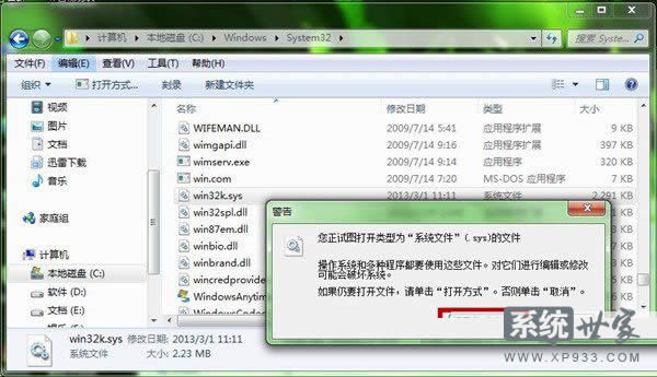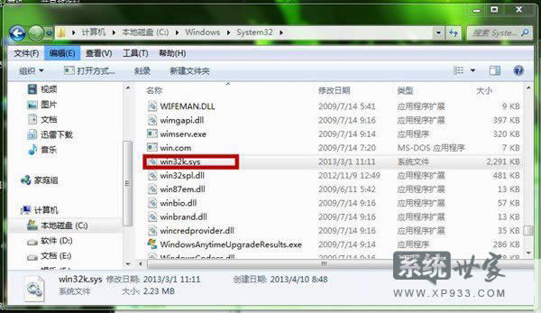 第一步、在電腦路徑C:\WINDOWS\system32目錄,找到win32k.sys系統(tǒng)文件。