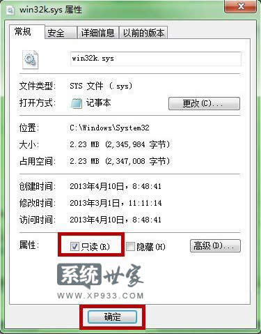 第六步、我們關閉記事本,右鍵單擊“TesSafe.sys”鍵,將文件屬性修改為“只讀”,再點擊“應用”,最后再“確定”。