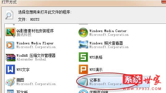 2、然后在打開之后就可以看到hosts文件了,然后選擇以“記事本”方式打開;