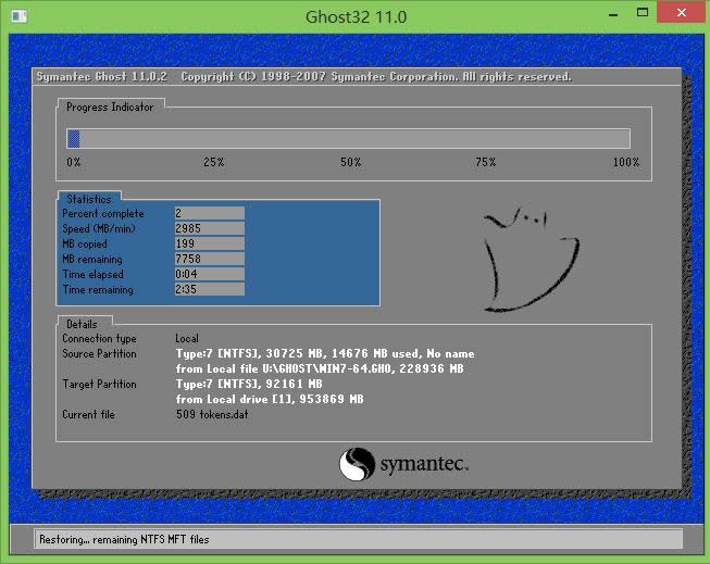 等恢復(fù)完成后重啟計算機(jī),將進(jìn)入系統(tǒng)自動重裝過程,只需等待即可。至此,用豆豆u盤安裝操作系統(tǒng)完畢!你可以忘掉沒有光驅(qū)無法安裝操作系統(tǒng)的煩惱了。