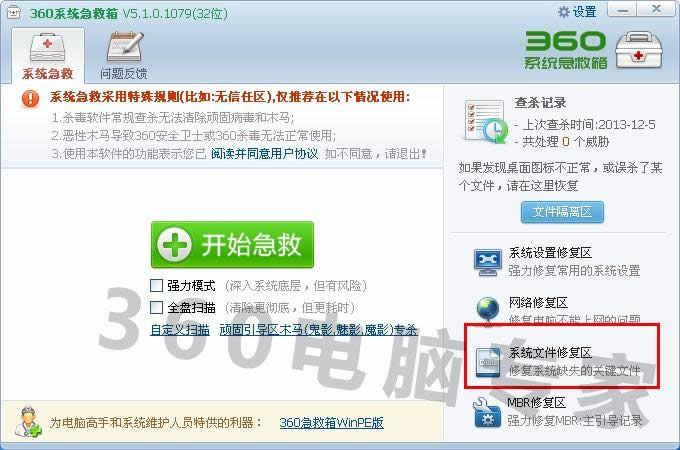 如果誤刪除了win7系統的重要文件,在系統啟動時報文件丟失錯誤就如何恢復被誤刪除的系統文件呢?現在win7筆記本系統為大家詳解文件丟失的處理以及要找回丟失的系統文件方法告訴大家。 誤操作導致系統文件被刪除, 【簡易步驟】: 【360安全衛士】—【功能大全】(更多)—【系統急救箱】—【系統修復】。 【解決方案】: 使用360系統急救箱修復系統文件丟失問題 1. 打開【360安全衛士】—【功能大全】(更多)—【系統急救箱】—【系統修復】。(如圖1、2)
