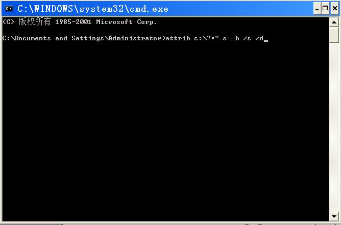 這樣就可把c盤下所以的文件夾隱藏屬性都去掉。如果不是C盤,而是其它盤符,只需將attrib后面的C改為其它盤符即可。比如D盤中的所有根文件夾都被隱藏了,則在dos命令窗口輸入