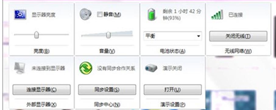 5、另外一個(gè)更強(qiáng)大的功能就是Win+X鍵,這個(gè)鍵位可以打開移動(dòng)中心設(shè)置窗口?煽焖俚貙(shí)現(xiàn)對(duì)顯示器的亮度控制、音量控制、筆記本的電量控制、手機(jī)同步控制、外接顯示器控制等等。