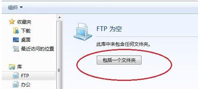 1.首先在“庫”中添加新“庫”,并點擊“包含一個文件夾”,然后選中要添加的網(wǎng)絡(luò)共享文件夾。