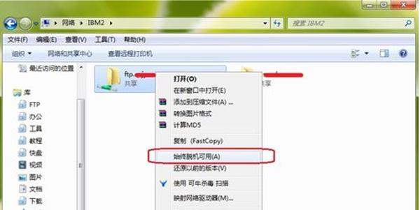 4.待系統(tǒng)重啟進入桌面后,右擊要添加的網(wǎng)絡(luò)文件夾,選擇“始終脫機可用”。