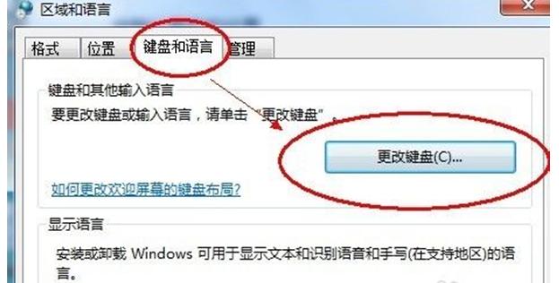 2.默認(rèn)進(jìn)入“鍵盤和語(yǔ)言”管理菜單,單擊“更改鍵盤”