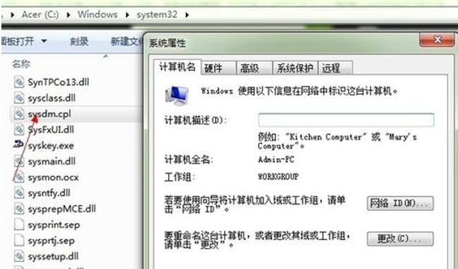 打開C盤,依次打開windows-system32文件夾,找到sysdm.cpl,打開便可打開系統(tǒng)屬性面板了。