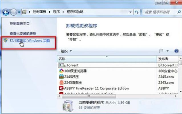 2. 點(diǎn)擊“打開(kāi)或關(guān)閉Windows系統(tǒng)功能”
