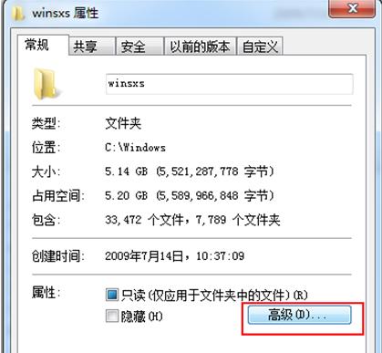 | Windows 7,中文名稱視窗7,是由微軟公司(Microsoft)開發的操作系統,內核版本號為Windows NT 6.1。Windows 7可供家庭及商業工作環境:筆記本電腦 、平板電腦 、多媒體中心等使用。Windows 7可供選擇的版本有:入門版(Starter)、家庭普通版(Home Basic)、家庭高級版(Home Premium)、專業版(Professional)、企業版(Enterprise)(非零售)、旗艦版(Ultimate)。 大家都知道,當C盤占用空間過大的話,對電腦運行速度有一定程度上的影響,那么如何解決這個問題呢?現Win7系統之家給大家介紹巧妙解決Win7系統C盤占用空間過大的問題的方法,具體步驟如下:1、使用系統管理員的賬戶登錄電腦。然后打開“計算機”,在C盤中找到windows文件夾中的winsxs文件夾,如圖: 2、然后查看這個文件夾的屬性,點擊高級按鈕,如圖: 3、選擇壓縮內容以節省磁盤空間。 windows 7 的設計主要圍繞五個重點——針對筆記本電腦的特有設計;基于應用服務的設計;用戶的個性化;視聽娛樂的優化;用戶易用性的新引擎。 跳躍列表,系統故障快速修復等,這些新功能令Windows 7成為最易用的Windows。 |