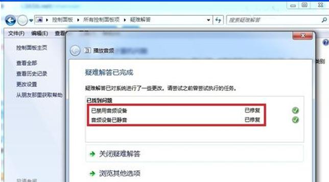 4、經(jīng)過一番搜索,終于被它檢測到禁用了音頻設(shè)備,并且作出修復(fù),清脆的聲音又來了!