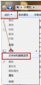 1、點(diǎn)擊資源管理器上的組織,選擇“文件夾和搜索選項(xiàng)”