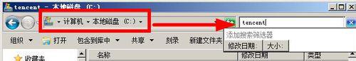 10、接著來(lái)到計(jì)算機(jī)的C盤(pán),對(duì)沒(méi)有用的tencent文件夾進(jìn)一步清掃,在搜索框輸入tencent,按下回車(chē)鍵