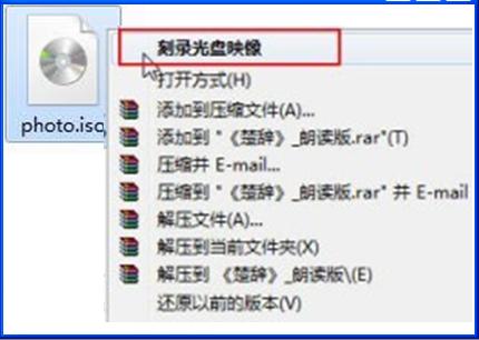 首先,按下“Win+E”組合鍵打開Win7資源管理器,進(jìn)入ISO鏡像文件所在的文件夾,右擊photo.iso鏡像文件所在的文件夾,選擇“刻錄光盤映像”的選項(xiàng),當(dāng)然也可以通過雙擊直接打開iSO文件的刻錄程序。