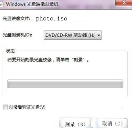 待彈出“刻錄光盤映像”操作界面后,選擇“刻錄機(jī)”點(diǎn)擊“刻錄”,即可馬上開始刻錄,等待一段時(shí)間后即可成功完成刻錄。