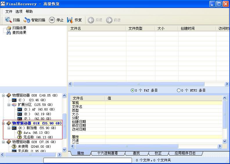4、在經(jīng)過智能掃描后,F(xiàn)inaRecovery會(huì)列出找到的分區(qū)。