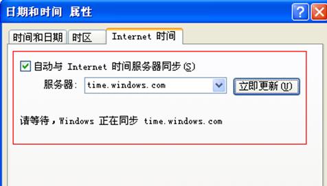2. 在“日期和時(shí)間 屬性”窗口中,切換到Internet時(shí)間選項(xiàng)卡,勾選“自動(dòng)與Internet時(shí)間服務(wù)器同步”,選擇“服務(wù)器地址”后點(diǎn)擊“立即更新”按鈕,然后點(diǎn)擊“確定”關(guān)閉所有窗口退出就OK了。