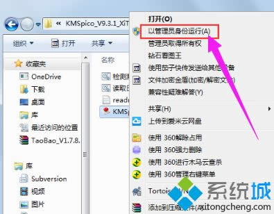 2、在文件夾中找到win8.1激活工具KMSpico 并且右鍵使用管理員模式打開;