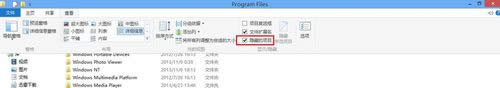 Windows 8是美國微軟開發(fā)的新一代操作系統(tǒng),Windows 8共有4個發(fā)行版本,分別面向不同用戶和設(shè)備。于2012年10月26日發(fā)布。微軟在Windows 8操作系統(tǒng)上對界面做了相當(dāng)大的調(diào)整。取消了經(jīng)典主題以及Windows 7和Vista的Aero效果,加入了ModernUI,和Windows傳統(tǒng)界面并存。同時Windows徽標(biāo)大幅簡化,以反映新的Modern UI風(fēng)格。前身旗形標(biāo)志轉(zhuǎn)化成梯形。 說到WindowsApps文件夾可能很多小伙伴都會陌生了,WindowsApps文件夾是系統(tǒng)很重要的隱藏文件夾,不少Win8系統(tǒng)用戶想要打開它查看里面內(nèi)容,可是不知道如何打開WindowsApps文件夾,雙擊點擊文件都沒有響應(yīng)。那么Win8系統(tǒng)該如何打開WindowsApps文件夾呢?接下來教程和大家講解Win8系統(tǒng)打開WindowsApps文件夾的方法。 具體方法如下: 1、默認(rèn)WindowsApps文件夾是隱藏的,進(jìn)入C:\Program Files,單擊查看,勾選隱藏的項目,這樣WindowsApps文件夾就能顯示了;雙擊WindowsApps文件夾,彈出你當(dāng)前無權(quán)訪問該文件夾窗口,單擊繼續(xù);