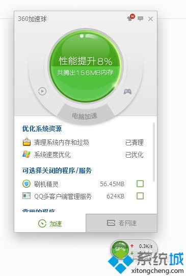 2、當(dāng)電腦運(yùn)行緩慢時(shí),就可以通過“360加速球”來清理系統(tǒng),并同時(shí)加速系統(tǒng)運(yùn)行;